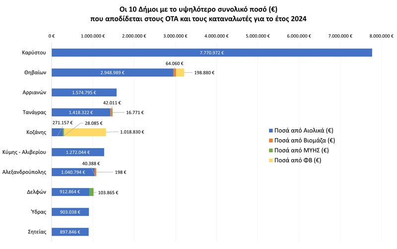 Κατεβάστε τον πίνακα με τους 10 Δήμους με το υψηλότερο συνολικό ποσό που αποδίδεται στους ΟΤΑ και τους καταναλωτές για το 2024 ΕΔΩ