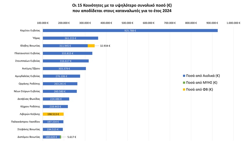 Κατεβάστε τον πίνακα με τις 15 κοινότητες με το υψηλότερο συνολικό ποσό που αποδίδεται στους καταναλωτές για το 2024 ΕΔΩ