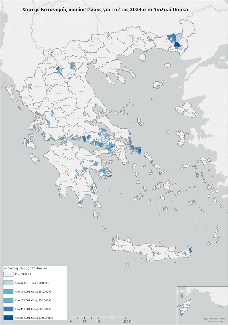 Κατεβάστε τον χάρτη κατανομής ποσών τέλους για το έτος 2024 απο αιολικά πάρκα ΕΔΩ